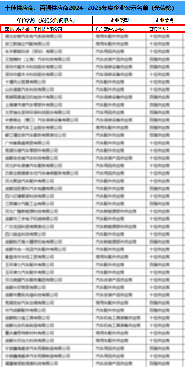 2025年4月,中國(guó)汽車供應(yīng)商網(wǎng)(China autosupplier)以“聚勢(shì) 賦能 共贏”為核心主題,并聚焦汽車后市場(chǎng)制造領(lǐng)域,對(duì)國(guó)內(nèi)一眾制造企業(yè)進(jìn)行評(píng)選。該活動(dòng)從公司信譽(yù)、企業(yè)實(shí)力和產(chǎn)品競(jìng)爭(zhēng)力三個(gè)關(guān)鍵維度進(jìn)行綜合考量,穩(wěn)先微成功入圍,榮獲“2024全國(guó)汽車后市場(chǎng)百?gòu)?qiáng)供應(yīng)商”。