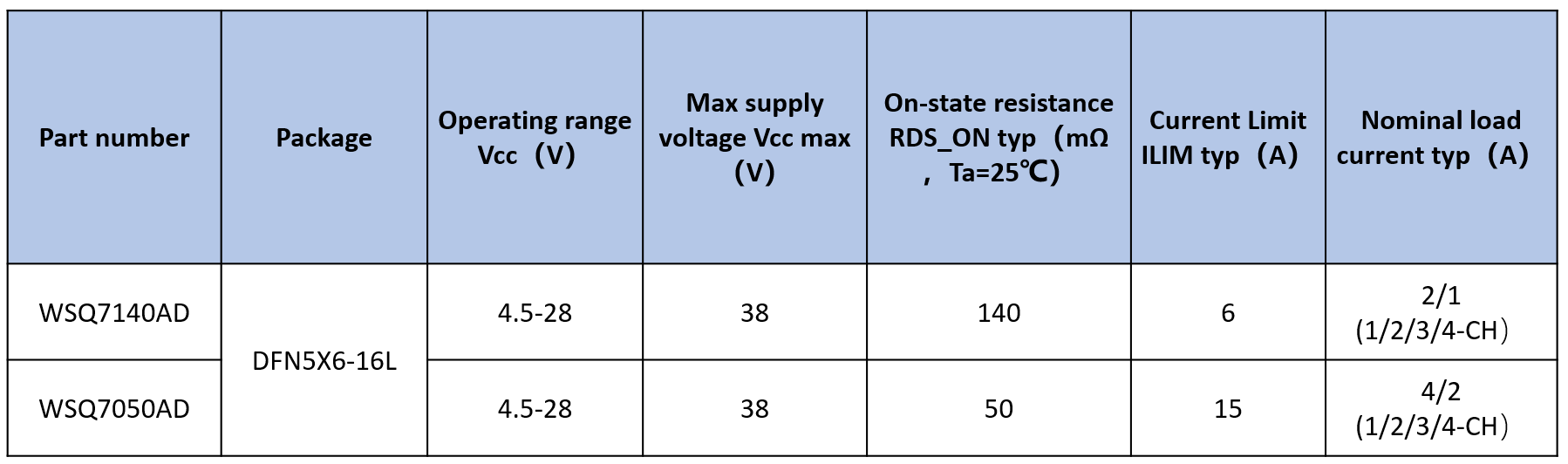 雙通道高邊開(kāi)關(guān)芯片WSD型: