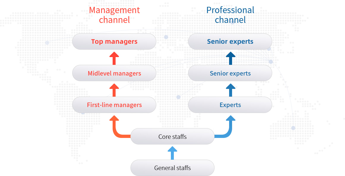 By combining with job requirements,we can make the employee who has management ability and potential become a manager. At the same time, make the person who with professional features and research into technology with great concentration become the experts in the field through his own efforts.
